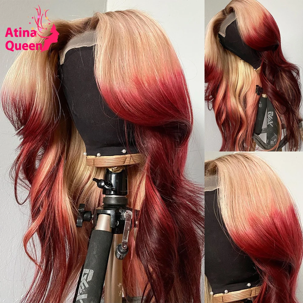 Ombre Colored 99j Burgundy Red Wig 613 Lace Front Human Hair Wig Body Wave Blonde Hd Lace Frontal Wigs Remy Perruque Pre Plucked Aliexpress